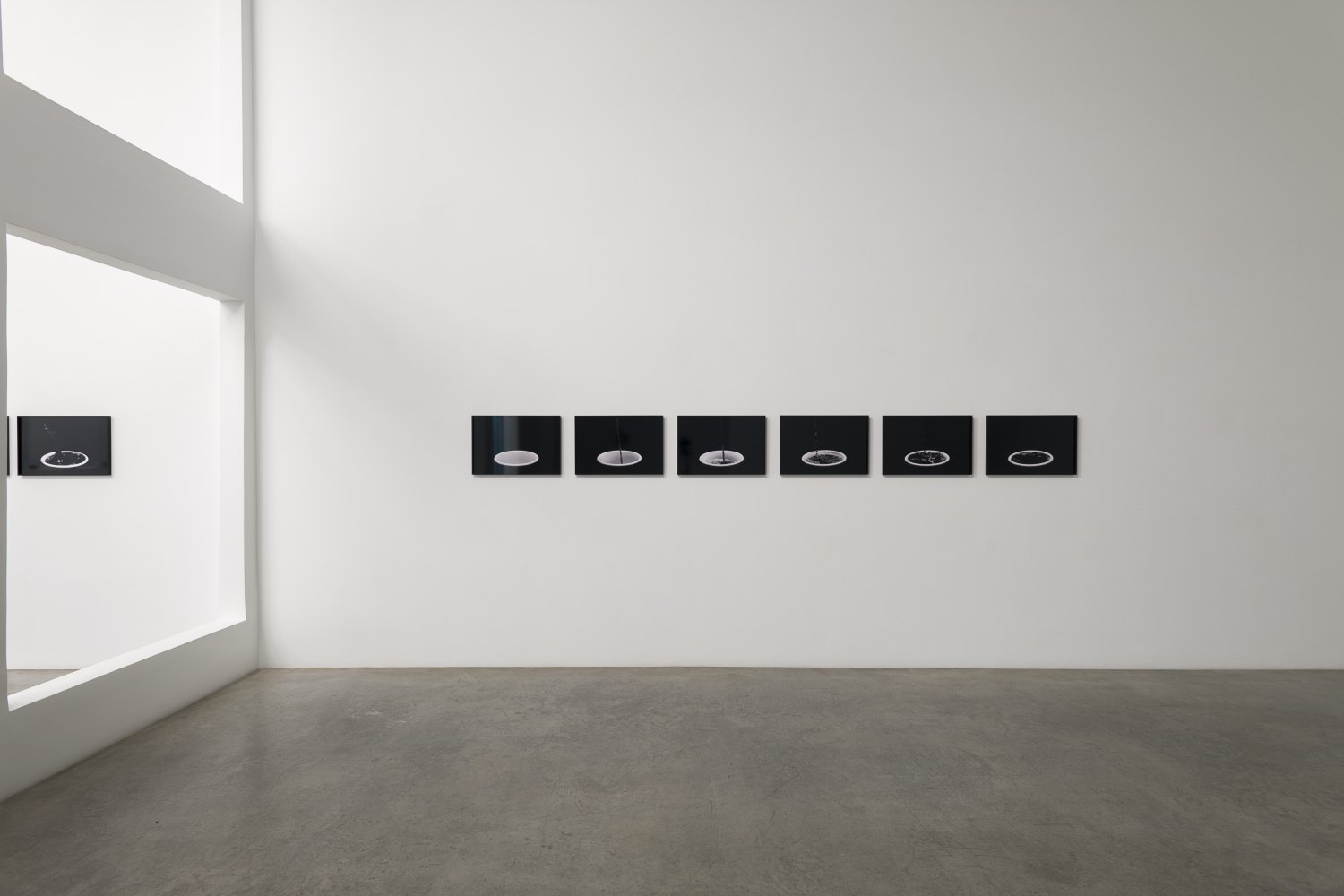 The manipulation of a sense of time is a recurring tool throughout the exhibition. In Rotor Vector, the video separated by a wall invites to look behind the scene, into the more commonly hidden space of an office. Shot digitally in 'black and white' and projected in a 4:3 ratio, its aesthetic is reminiscent of film noir, itself rooted in German expressionist cinema. Filmed at 120 frames per seconds, the scene is animated by the silent flickering, fizzing and shimmering of props, unraveling positioning and perspective.