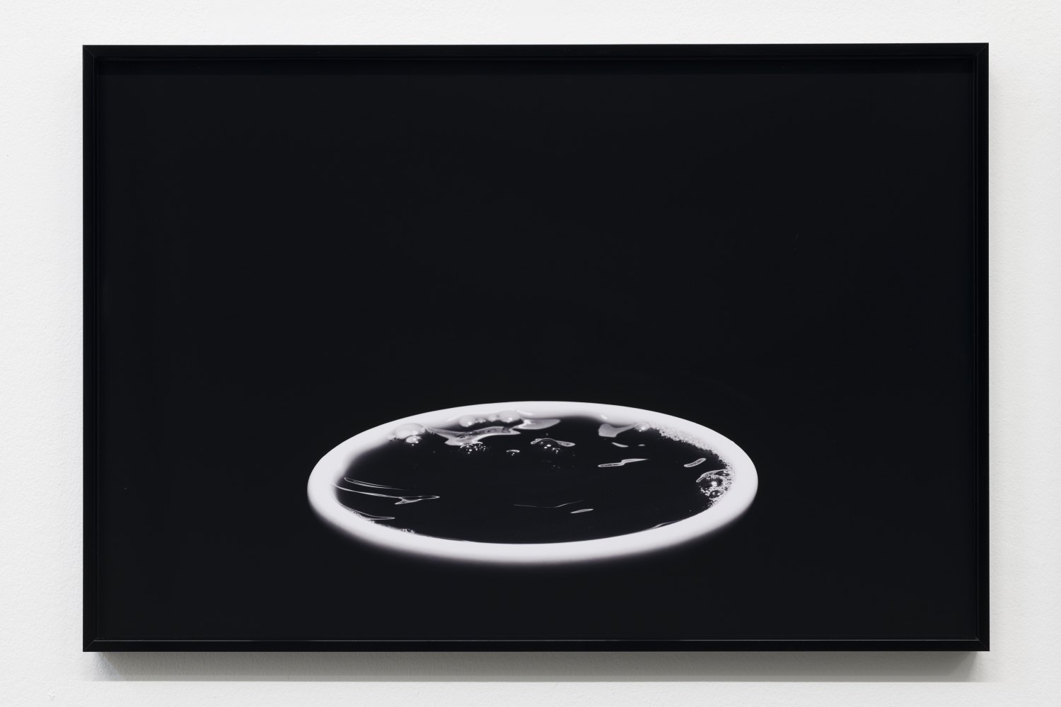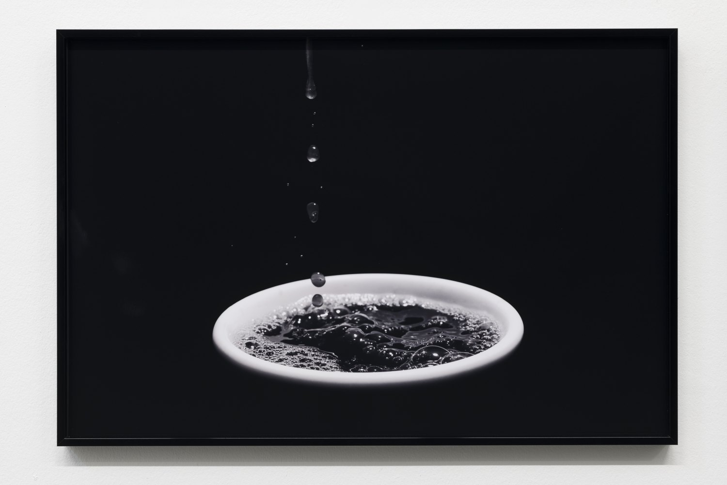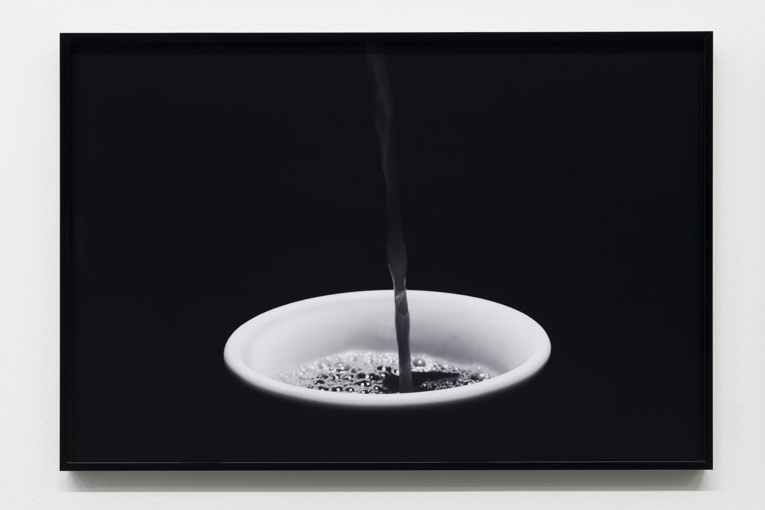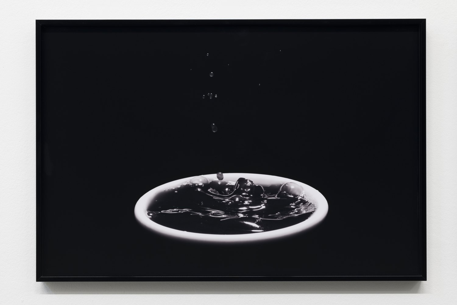 The manipulation of a sense of time is a recurring tool throughout the exhibition. In Rotor Vector, the video separated by a wall invites to look behind the scene, into the more commonly hidden space of an office. Shot digitally in 'black and white' and projected in a 4:3 ratio, its aesthetic is reminiscent of film noir, itself rooted in German expressionist cinema. Filmed at 120 frames per seconds, the scene is animated by the silent flickering, fizzing and shimmering of props, unraveling positioning and perspective.