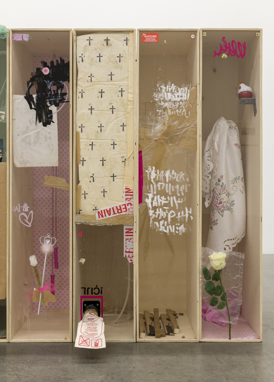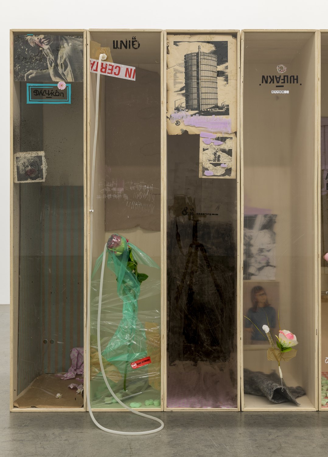 Her powerful aesthetic visions articulating the fantasies, nightmares, and dispossessions underpinning late capitalism, with particular emphasis on the loneliness and estrangement that result from social inequity, vividly resonate in the different approaches and visual languages embodied by the recent works of Jesse Darling, Win McCarthy and Ima-Abasi Okon.